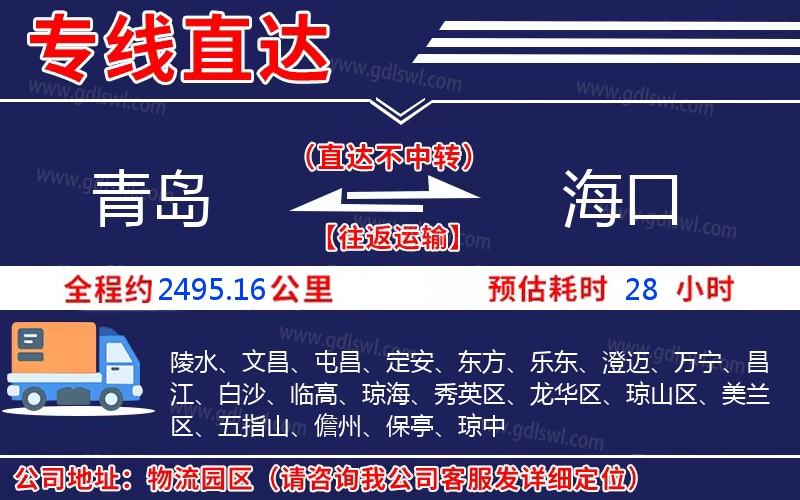 青島到??谖锪鲗>€是一條連接青島和??诘呢浳镞\(yùn)輸線路,由陸順物流公司提供直達(dá)不中轉(zhuǎn)運(yùn)輸服務(wù),能為企業(yè)、工廠、貿(mào)易商以及個人提供高效、便捷、可靠的貨運(yùn)解決方案